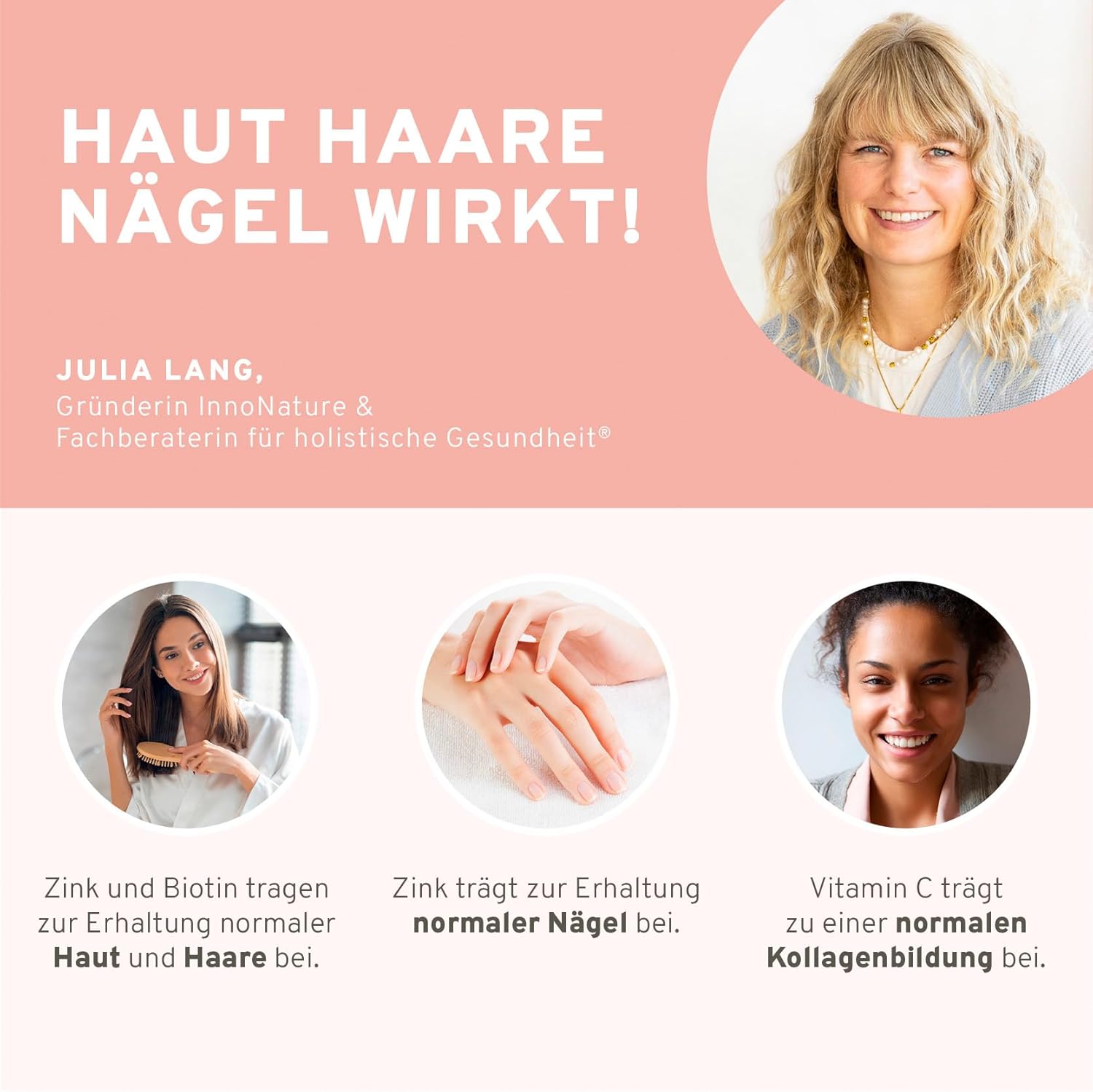 • Rundum-Support: Biotin & Zink tragen zur Erhaltung normaler Haut, Haare und Nägel bei.