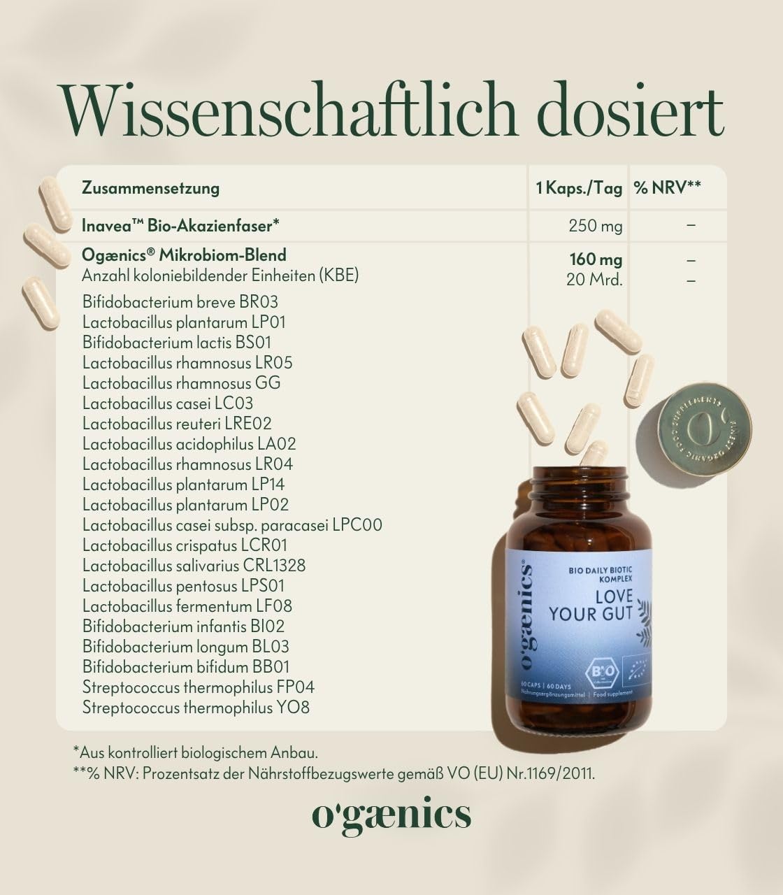 Ogaenics Love Your Gut – Bio-Probiotikum mit 21 Stämmen & Akazienfaser